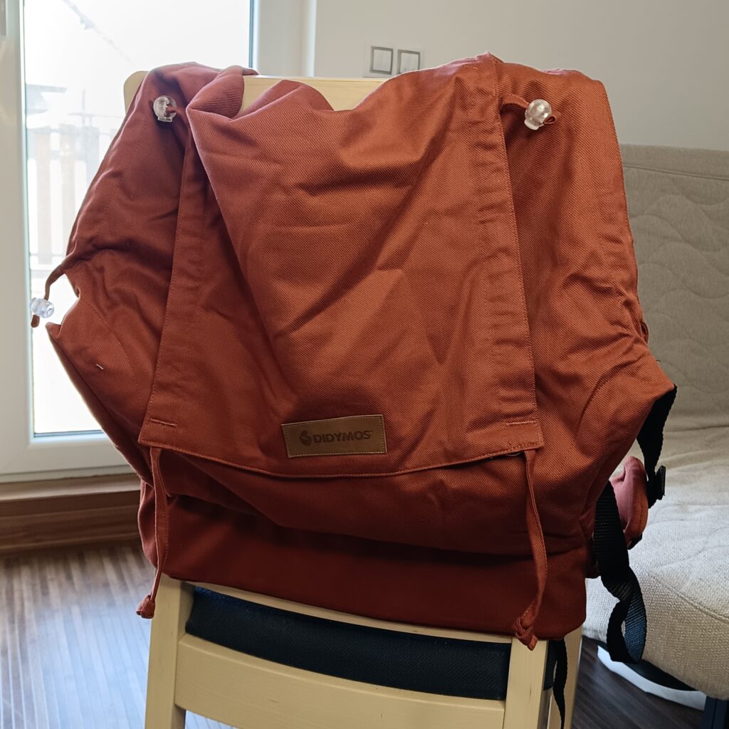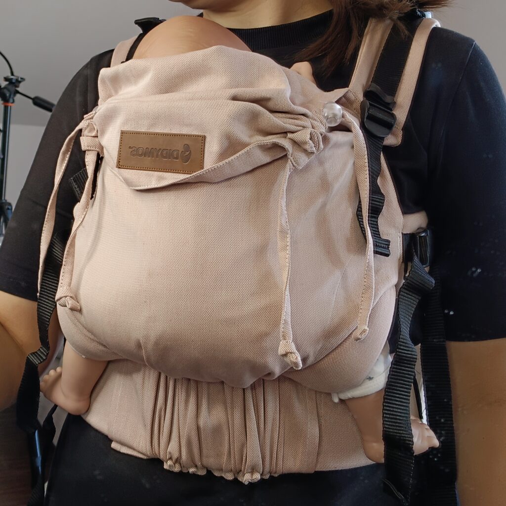 Didymos – DidySnap: Celopřezkové rostoucí nosítko. Materiál: šátkovina. Vhodné: od narození (minimální velikost zhruba 56, 3.5Kg) do 1,5 až 2 let. Bederní pás: tvrdý, rovný. Možnost alternativního upnutí popruhů: ANO (do M přezky pod zadečkem).